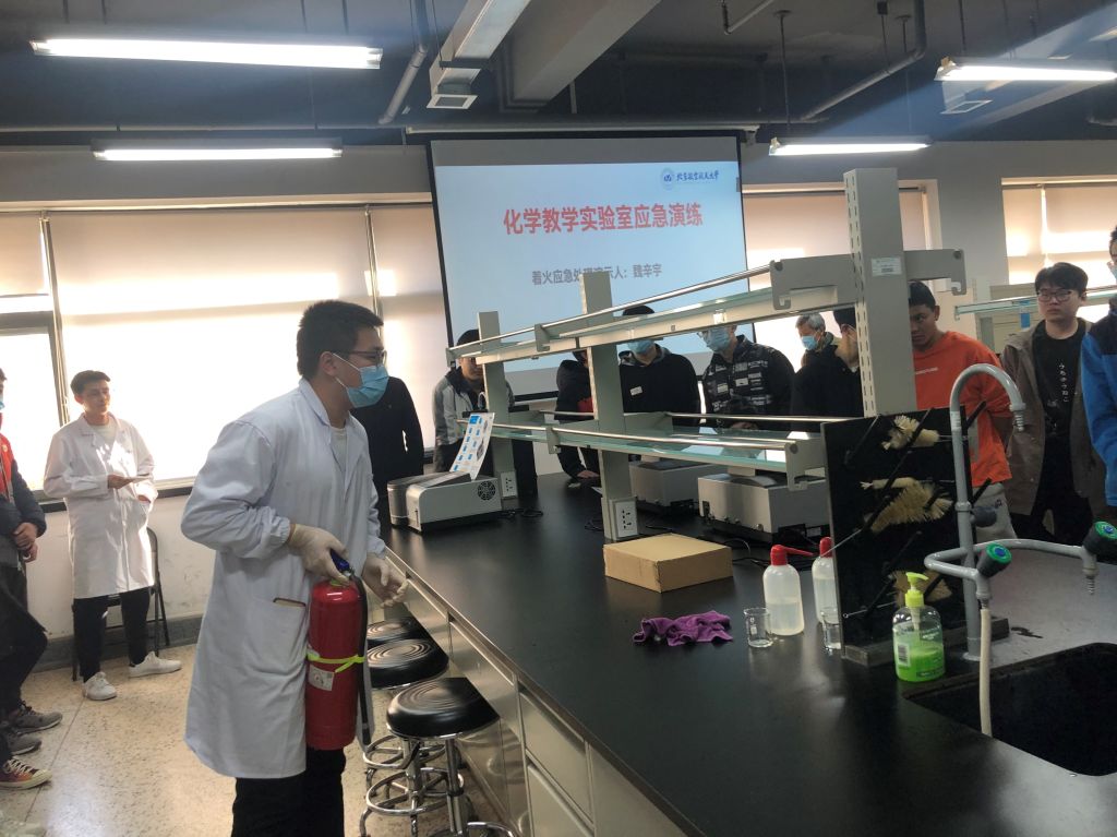 为了进一步加强公司安全工作,增强化学实验教学中心师生安全意识,提高员工对实验安全应急处置能力,本着坚持“安全第一,预防为主”的方针和“以人为本”的思想,2021年11月24日化学实验教学中心(平台)在实验楼1号楼301室进行了实验室安全培训及应急演练。中心全体实验室负责教师和2018级本科生(2022年毕业班)及10余名博、硕士研究生等50余人参加了本次演练。