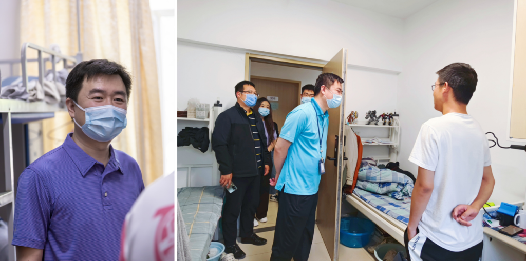 365best体育官网登录经理刘明杰一行到实验7号楼研究生工位、沙河东区和西区宿舍看望本研员工,与同学们详细沟通了学习和科研进展,了解员工需求,鼓励同学们合理安排好科研、上课、学习及生活,积极锻炼身体,以实际行动守护美丽校园。