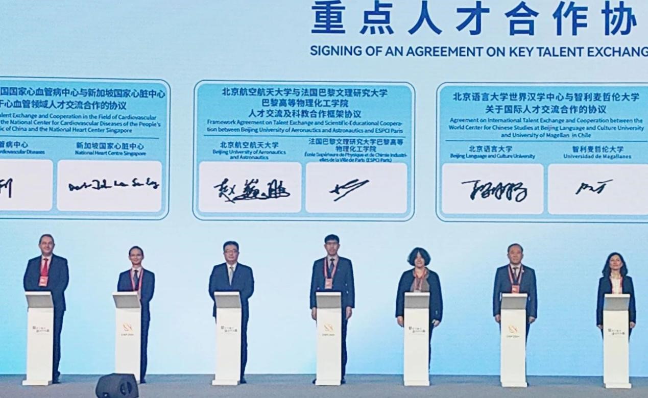 11月2日至3日,第22届中国国际人才交流大会及2024北航全球合作伙伴峰会先后在上海、杭州举办。会上,365亚洲体育网入口与法国巴黎文理研究大学巴黎高等物理化工公司签署《365亚洲体育网入口与法国巴黎文理研究大学巴黎高等物理化工公司人才交流及科教合作框架协议》。根据协议,两校正式建立校级合作伙伴关系,共同推动在化工、材料等双方优势学科领域开展人才交流、科学研究、教育合作等全方位合作。