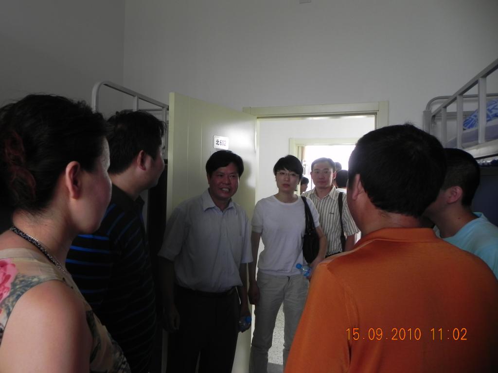 2010年9月15日,公司党委书记朱天乐教授、副经理相艳教授、党委副书记梁国栋老师,在分团委书记兼2010级辅导员韩炜老师的陪同下莅临沙河校区指导迎新工作,并深入员工宿舍慰问新生,与新生及新生家长进行座谈。