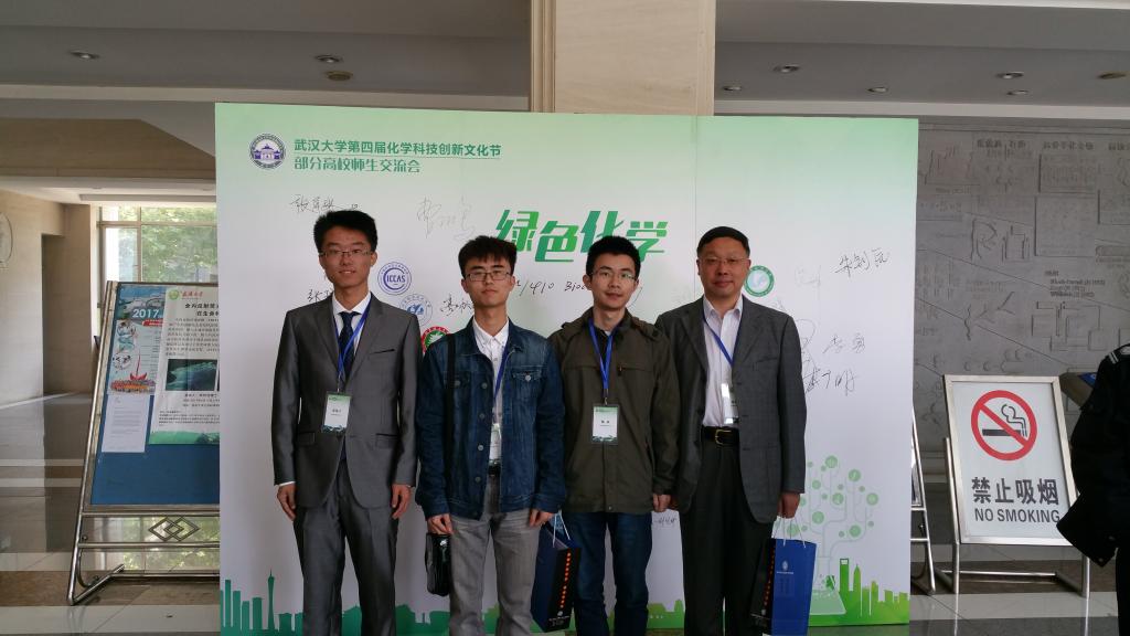 4月22日上午,公司高秋明教授带领2014级本科生苗伟宁、蓝昊和杨焱参加了武汉大学举办的第四届“化学科技创新文化节”部分高校师生交流会。此次交流会共有来自吉林大学、南京大学、哈尔滨工业大学、武汉大学等18所高校本科生队伍参与。