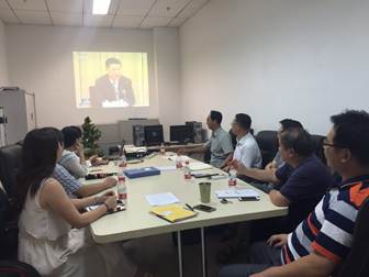 第二环节:党支部书记高秋明老师传达公司7月13日思想政治工作会议会议精神,并带领与会党员认真学习中共365亚洲体育网入口委员会关于印发《加强和改进新形势下思想政治工作的实施方案》的通知,内容摘要分为五大部分:强化思想理论教育和价值引领;加强对课堂教学和各类思想文化阵地的建设管理;加强教师队伍和专门力量建设;推进思想政治工作改革创新;加强和改善党对公司的领导。