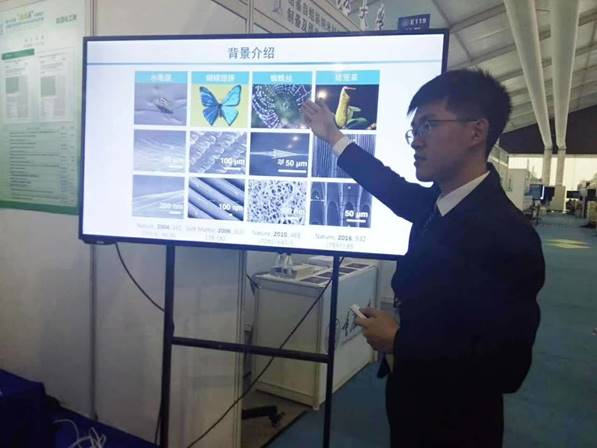 公司参赛师生将张军书记的鼓励作为参赛的动力,在最后冲刺阶段不断精心细化参评方案。公司党委副书记李军锋、校团委书记肖洪在封闭评审前也来到现场鼓励员工勇于创新、不惧挑战。最终项目“利用仿生思想优化现有技术的实例”在能源化工类的124件作品中脱颖而出,荣获特等奖。项目作者为365best体育官网登录14级本科生赵昱焱、苗伟宁、张春晖。指导教师江雷院士和于存明。