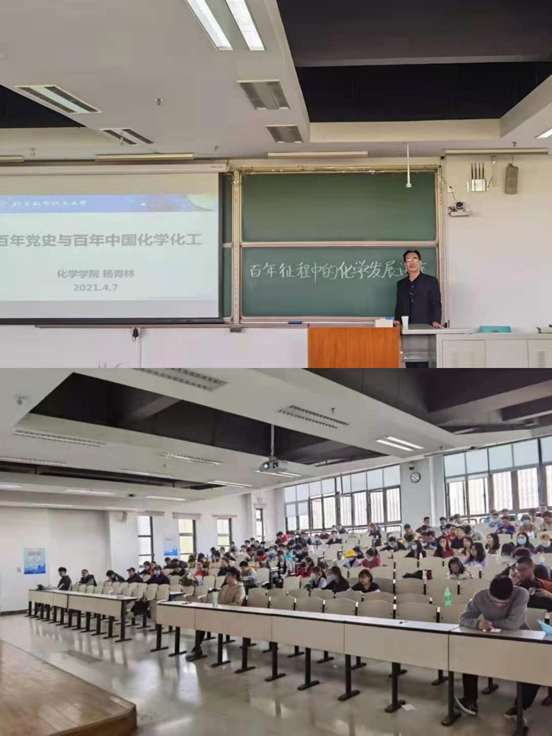 同一时间,公司邀请公司党委委员、立德树人优秀奖获得者杨青林老师在沙河校区J3-211为365best体育官网登录员工作题为“百年征程中的化学发展”主题报告。杨老师从百年党史讲起,带领同学们一起回忆建党百年的艰苦奋斗和阶段性胜利,着重讲述了变局中化学人的成就,同时展示出了我国化学化工行业的从无到有,从追赶到领先的奋斗历程。