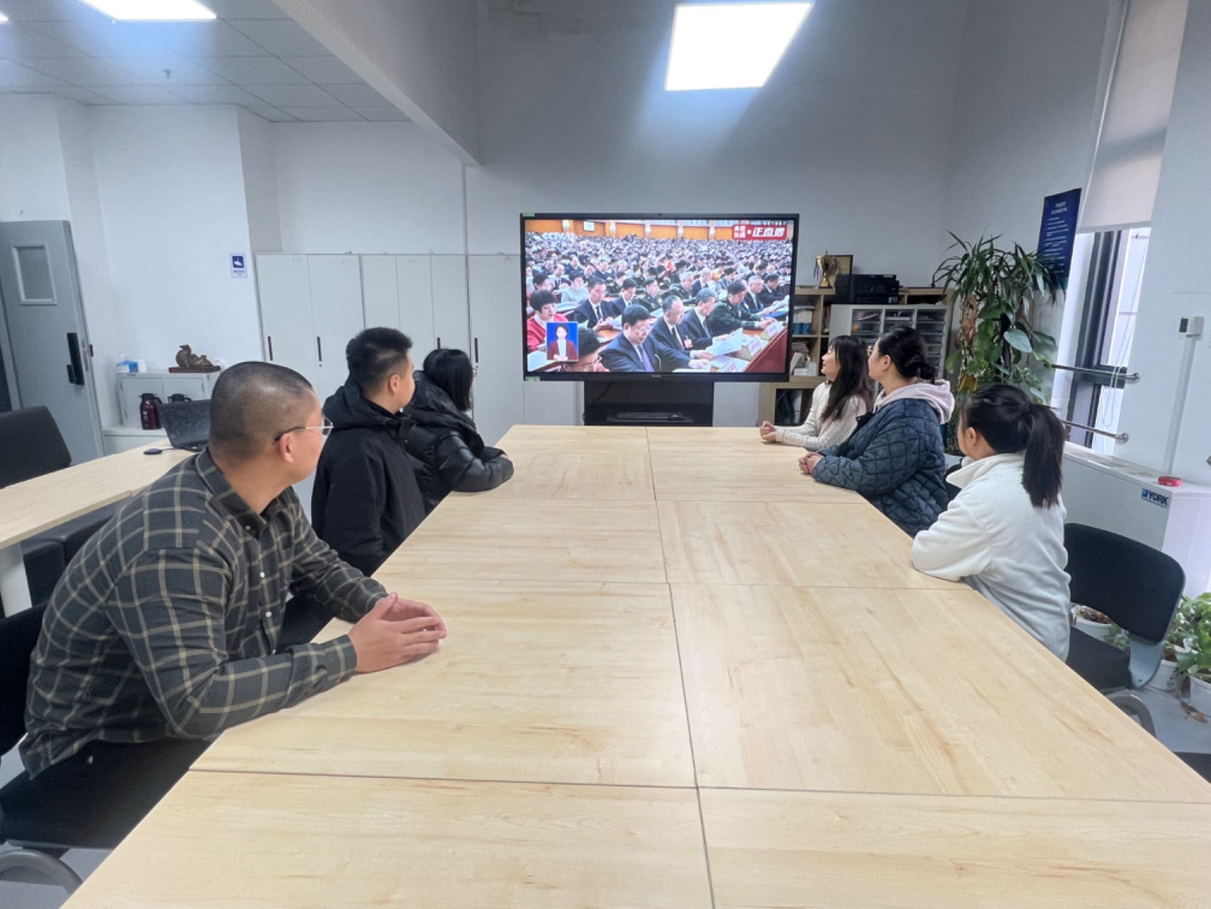 公司党委提前部署,组织师生在会议室、实验室、教室等场所集中观看两会直播。部分师生通过手机、网络平台实时跟进会议动态,确保学习全覆盖。直播过程中,师生全神贯注聆听国务院总理的政府工作报告,认真记录要点,现场氛围庄重而热烈。