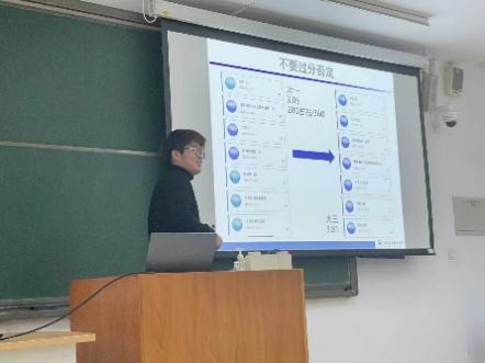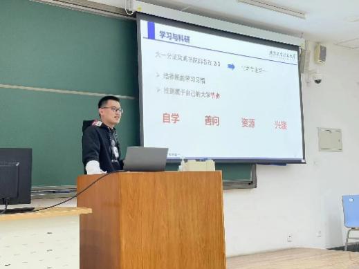 他首先讲述了“不过分否定”和“不过分肯定”的健康心态,其中着重讲述自己在进入365best体育官网登录后找到了人生目标,不断奋斗并成功逆袭的故事,为刚遭受期中考试成绩打击的同学们提供了安慰,肯定与鼓励,接着,他从目标、学习、科研、娱乐几个方面进行分享,其中慕课自学、文献阅读等方法让同学们获益匪浅。