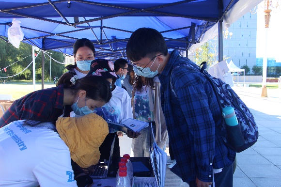迎新第二天上午,董事长徐惠彬院士及公司领导莅临报道现场慰问指导迎新工作,与前来报到的新生亲切交流并合影留念。