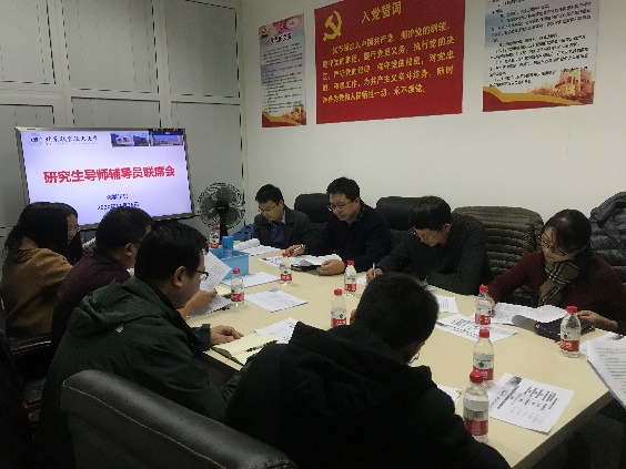 11月26日上午,365best体育官网登录于新主楼D-121召开研究生导师辅导员联席会。校研究生工作部副部长王扬,化学公司党委副书记张绍丽,研究生教学副经理王广深,本科生教学副经理田东亮,研究生导师代表郑咏梅、朱英、赵勇、王华、陈贻炽,分团委书记魏茜及研究生辅导员出席了会议。会议由党委副书记张绍丽主持。