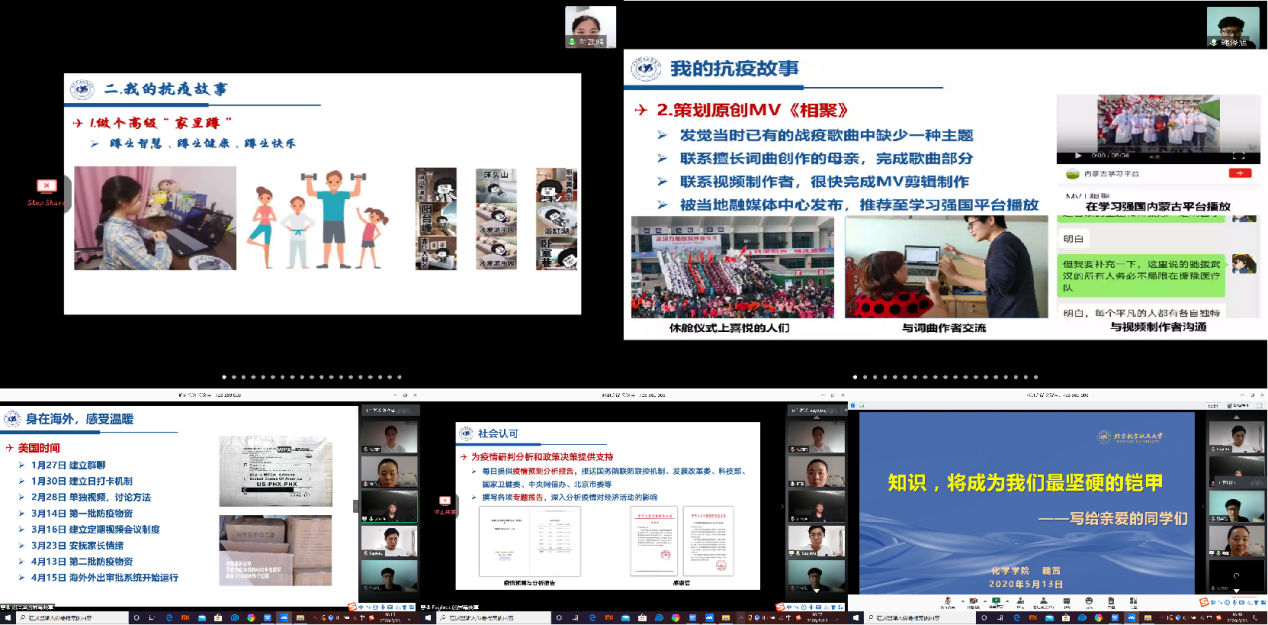首先,在居家学习的这段日子里,我们面对着来源广泛、五花八门的疫情相关信息,要依靠自己的科学知识和理性思考冷静客观地进行辨识,做好自我防护。其次,我们可以宣传防疫知识,用自己的专业知识引导与服务他人,就像365best体育官网登录举办的新冠疫情防控创新大赛中涌现出许多优秀的科普宣传、科研创新作品一样,我们要让自己丰富的想法转化为行动。再次,知识还是我们应对谣言与攻击的有力武器,让我们能够形成有理有据的观点来应对质疑。最后,魏老师号召我们全体同学要在做好健康防护的同时继续保持认真学习的状态,打牢专业基础,也可以利用这段时间认真思考自己的发展方向,做好未来规划。当我们回到洒满阳光的北航,将身披着更厚实的知识铠甲坚毅前行。